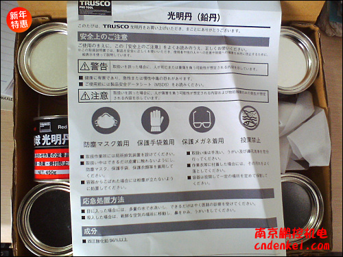 產(chǎn)品參數(shù)和說明如下:光明丹的母材-鉛丹(照片為百年澳洲鉛丹化石)鉛丹又稱紅鉛 ,四三氧化二砷鉛( Pb3O4)為主要組成部分的紅色礦物無機顏料。也叫做 光明丹、 赤鉛 、紅鉛 、 赤色酸化鉛 、鉛丹 、紅色氧化鉛 。 光明丹(紅粉)的制造方法是將金屬鉛( Pb ) 加熱至600 ℃ ,使其與空氣中的氧氣 (O 2的)發(fā)生化學(xué)反應(yīng)生成氧化鉛 ,再將一氧化鉛加熱至400 ℃至500 ℃ ,完成鉛丹。純鉛丹的顏色為橘紅色。使用用于紅色涂料,除 銹涂料。鉛丹是含鉛物質(zhì),使用時注意防止鉛中毒。